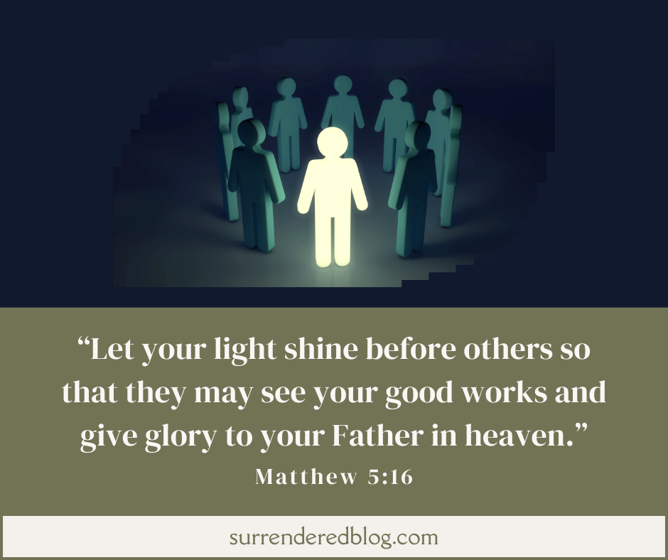 So, how can you let your light shine as Jesus instructs? The answer is different for each follower but here are some general ideas.